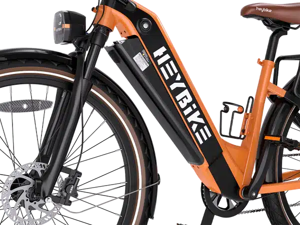 The hydraulic front suspension absorbs road vibrations and uneven surfaces, ensuring a smoother, more controlled ride across urban streets.